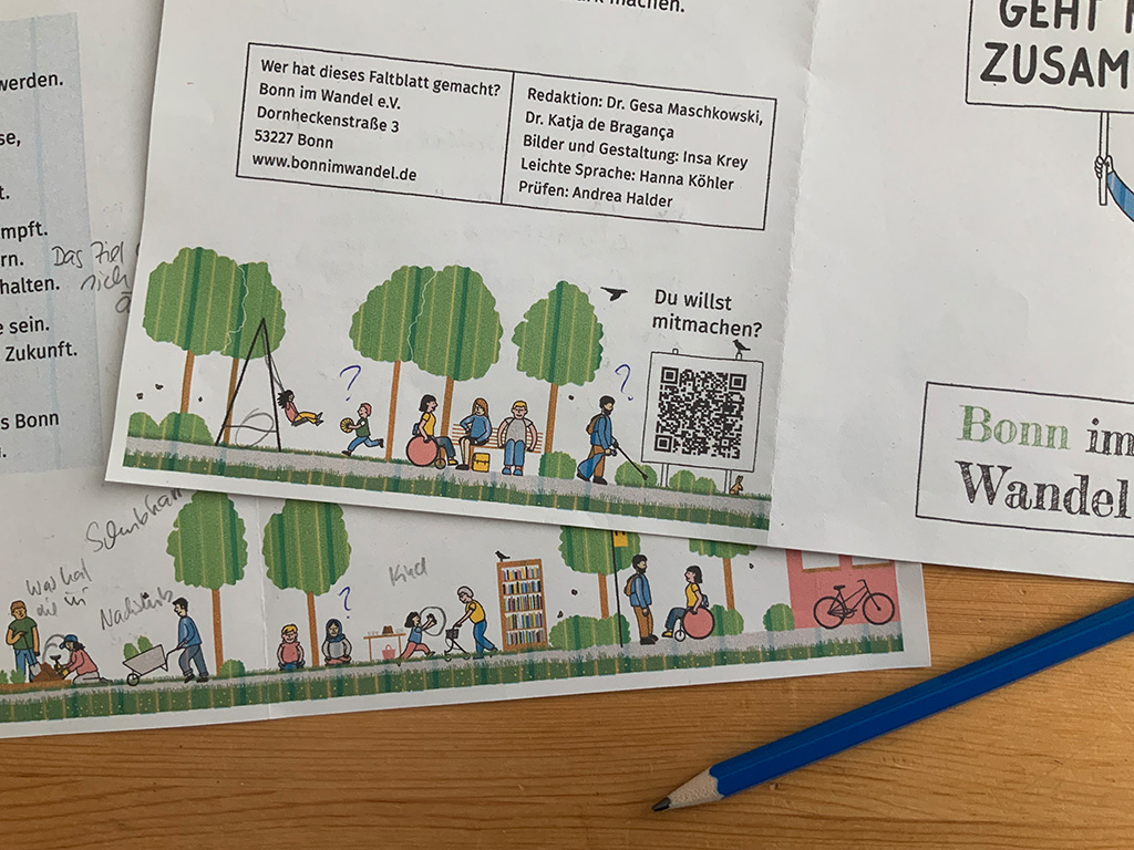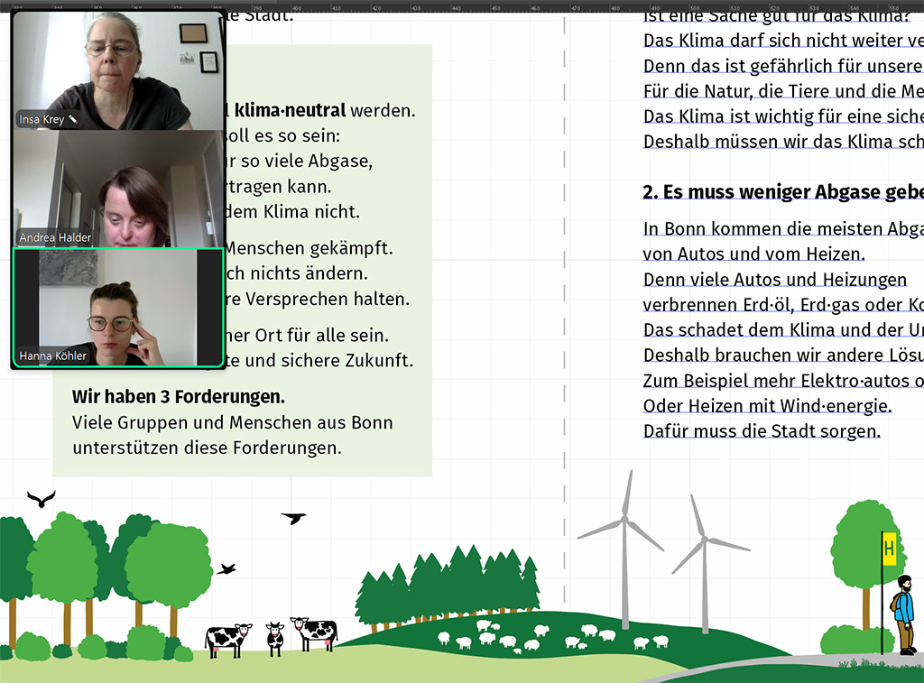 12.8.2025 Zoom mit Hanna und Insa, 10 Uhr (ik) Hanna und ich haben uns heute online getroffen.Zusammen mit dem Verein „Bonn im Wandel“ wollen wir ein Faltblatt erstellen. Das Faltblatt ist für eine DemonstrationDer Verein „Bonn im Wandel“ hat dazu einen langen Text geschrieben. Diesen Text müssen wir kürzen und in Leichte Sprache übersetzten. Und […]