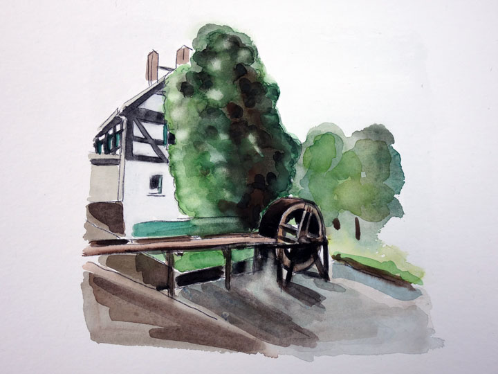 Es klappert die Mühle am rauschenden Bach, klip klap klip klapDie Künstlerin Gabriele Lutterbeck hat das Bild von der Wasser·mühle gemacht.